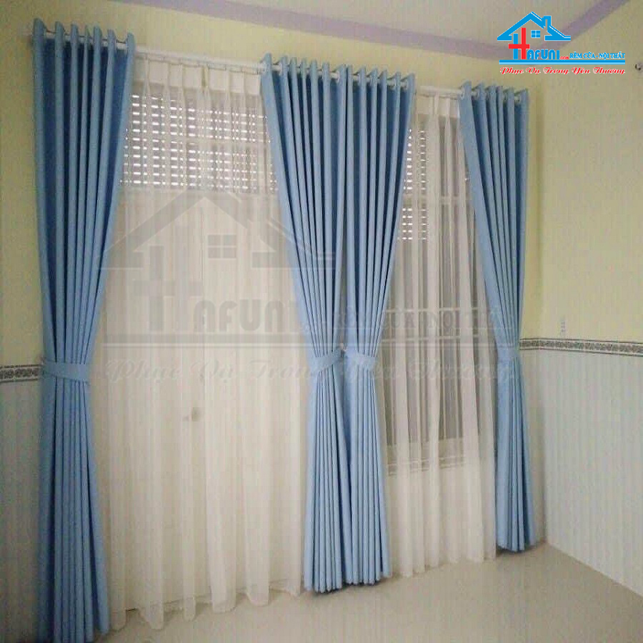 Rèm cửa màu xanh tinh tế, nhẹ nhàng
